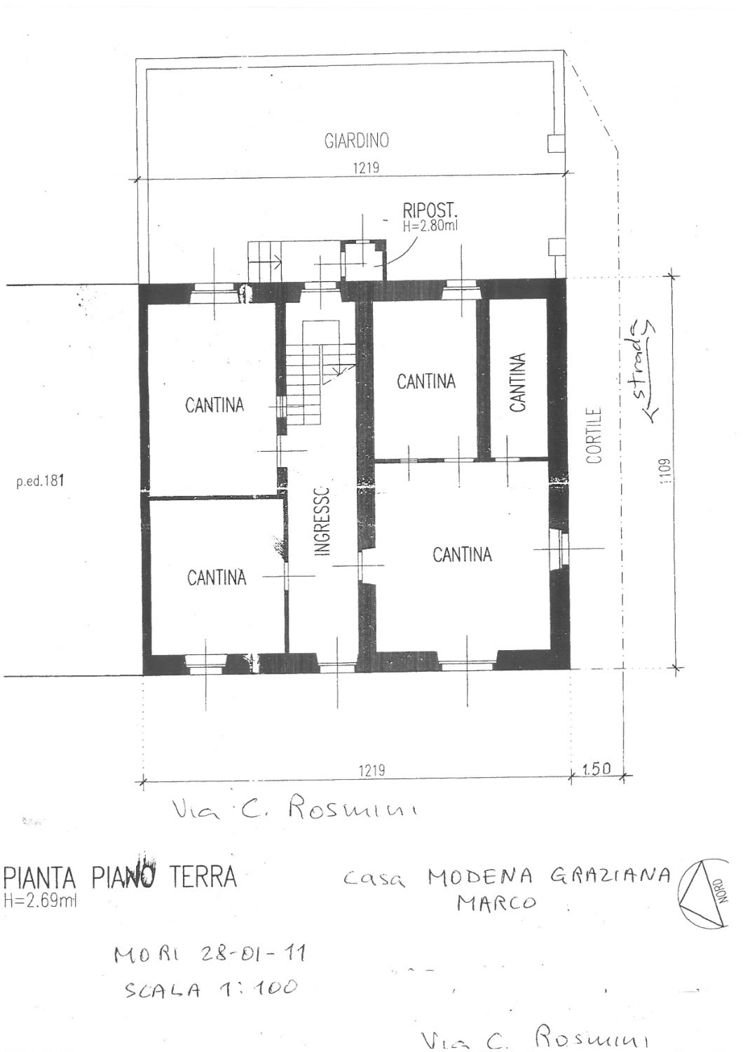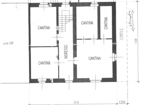 A piano terra troviamo due grandi locali finestrati uno trasformabile in garage, due cantine, locale caldaia e ampio cortile privato. Al primo piano 5 locali e bagno (150mq) mentre al secondo piano due grandi vani al grezzo (circa 150 mq con un altezza max di 3,90m).